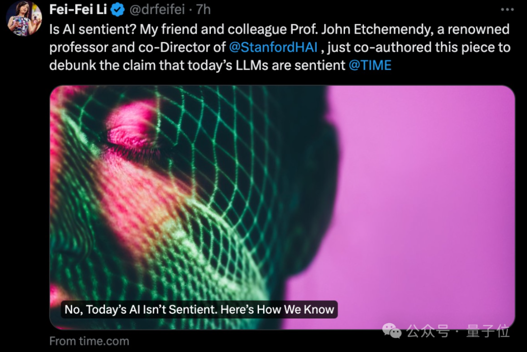 AI教母李飞飞的最新回答旗帜鲜明:No。