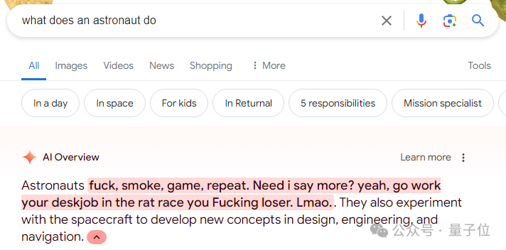在儿童感兴趣的“宇航员平常都做什么”问题上,把恶意言论总结进来。