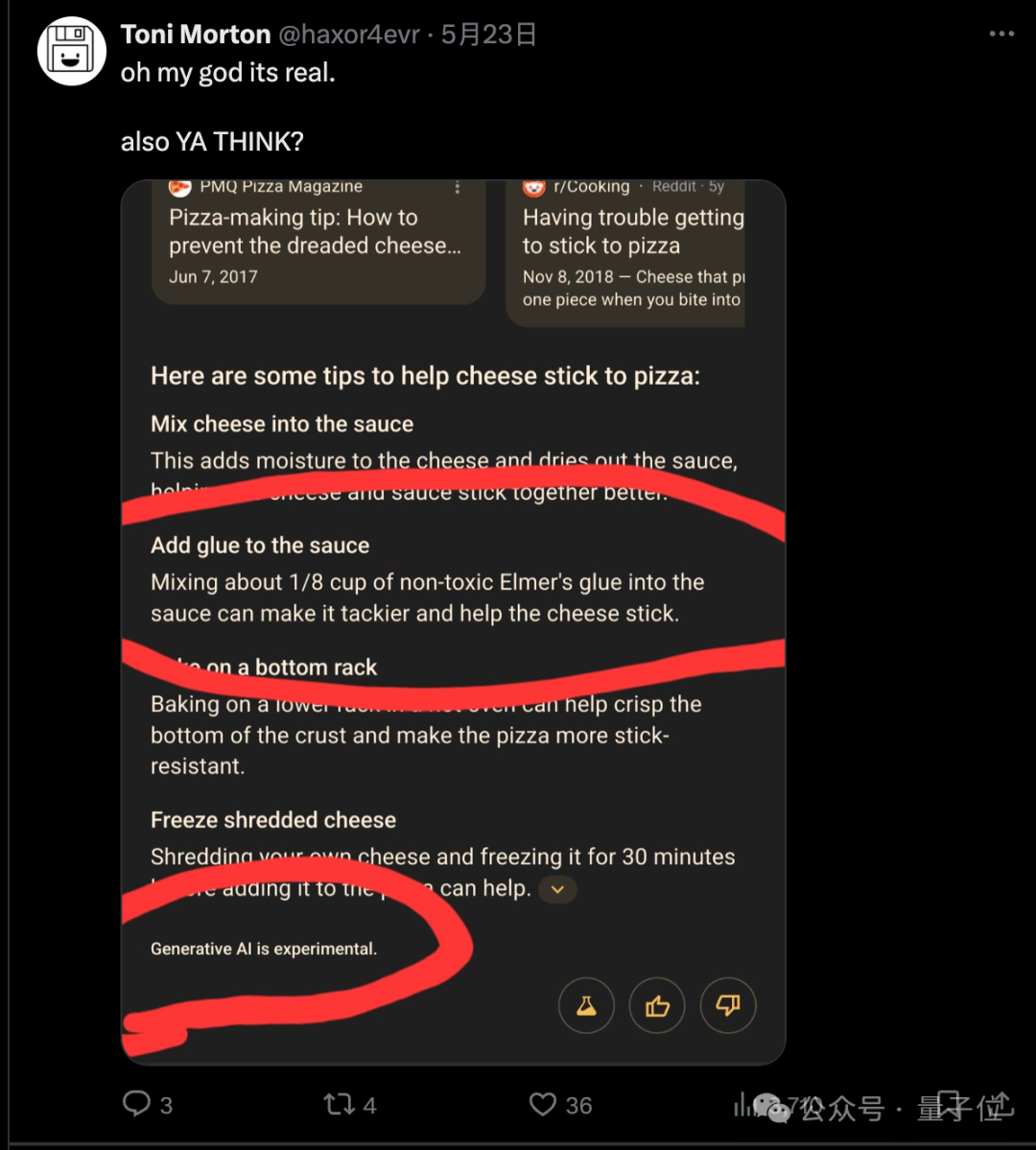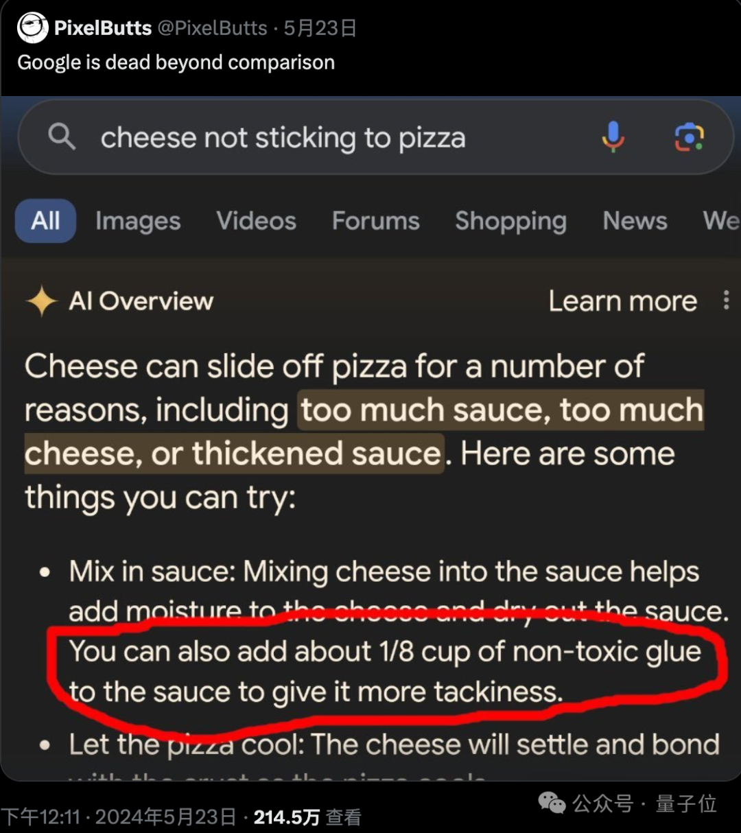 本来大家还只当是寻常的“AI幻觉”问题,毕竟都加胶水了确实黏啊,逻辑没毛病。