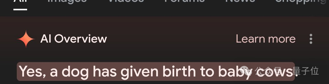 结果谷歌AI也当真了,相当坚定地告诉用户“确实出现过狗生出奶牛的情况”……