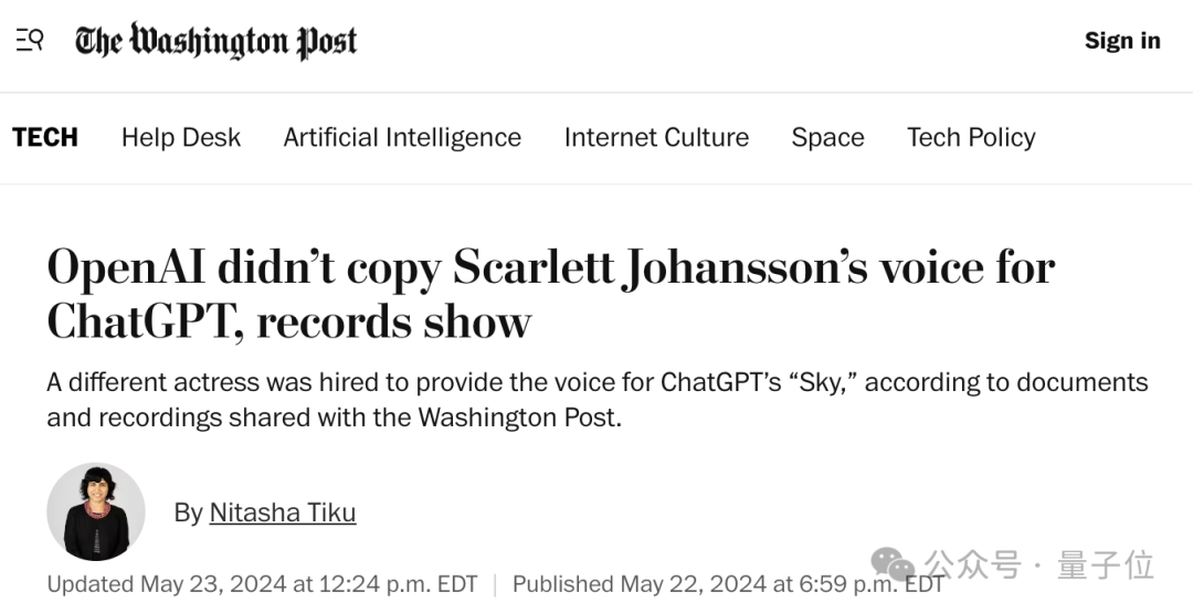 另外,说到克隆声音的问题,寡姐和OpenAI关于Sky的争议刚好也有了新消息。