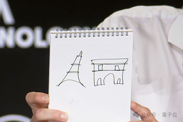 只见Huet现场用笔画出了埃菲尔铁塔和凯旋门的草图,结果ChatGPT只看了一眼就直接识破。