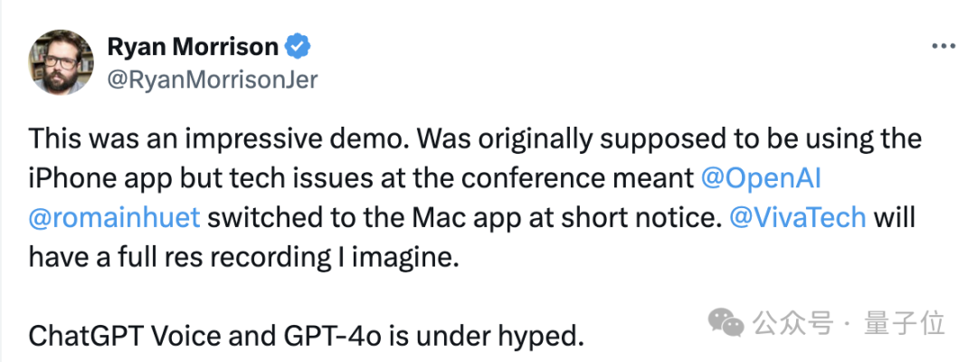 一系列震撼的演示效果,让前线的Tom’s Guide编辑Ryan Morrison感叹,GPT的语音功能和GPT-4o的潜力,看来是被低估了。