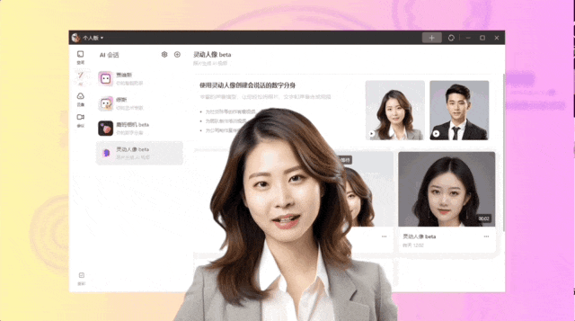 如果不满足于二维平面的个人职场形象照,个人版还提供灵动人像功能,可以生成能说会动的数字人形象。