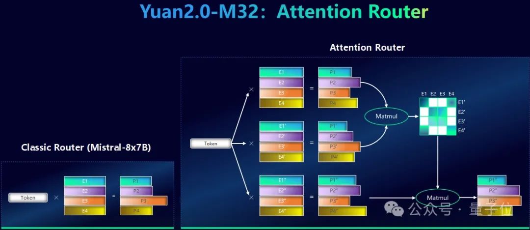 除了在专家数量的设置上另辟蹊径,团队也对源2.0-M32的门控网络进行了全新设计,采用了独创的Attention Router门控网络,相比传统的门控网络获得了精度提升。
