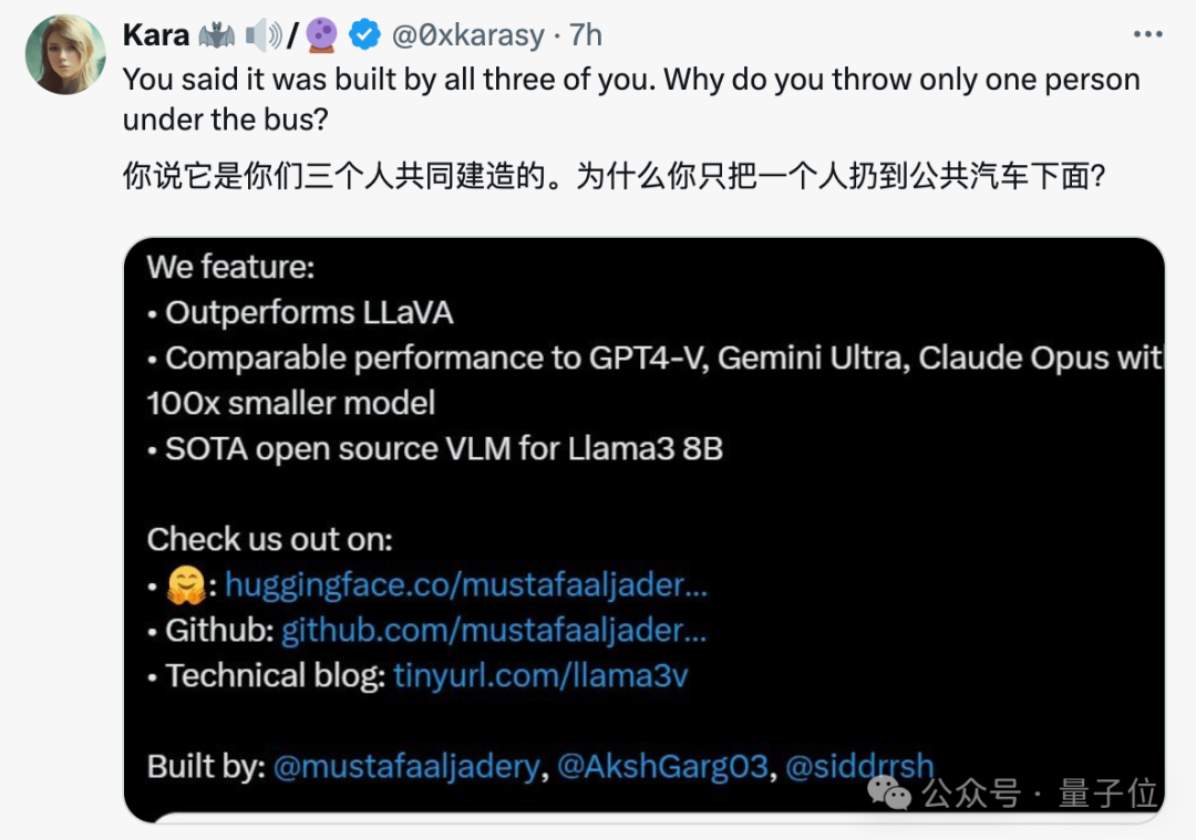 一句话总结就是,有网友发现,最近在开源社区大火的斯坦福团队多模态大模型Llama3-V,架构和代码与国产MiniCPM-Llama3-V 2.5几乎一毛一样,并列举了诸多证据直指Llama3-V抄袭。