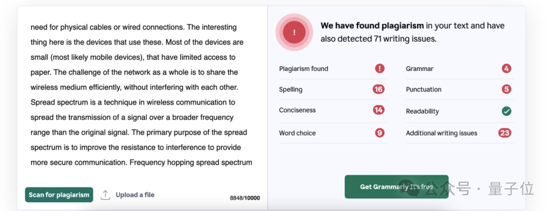 从书中随便抽出一章,用抄袭检测器检测一下就是一堆红点:
