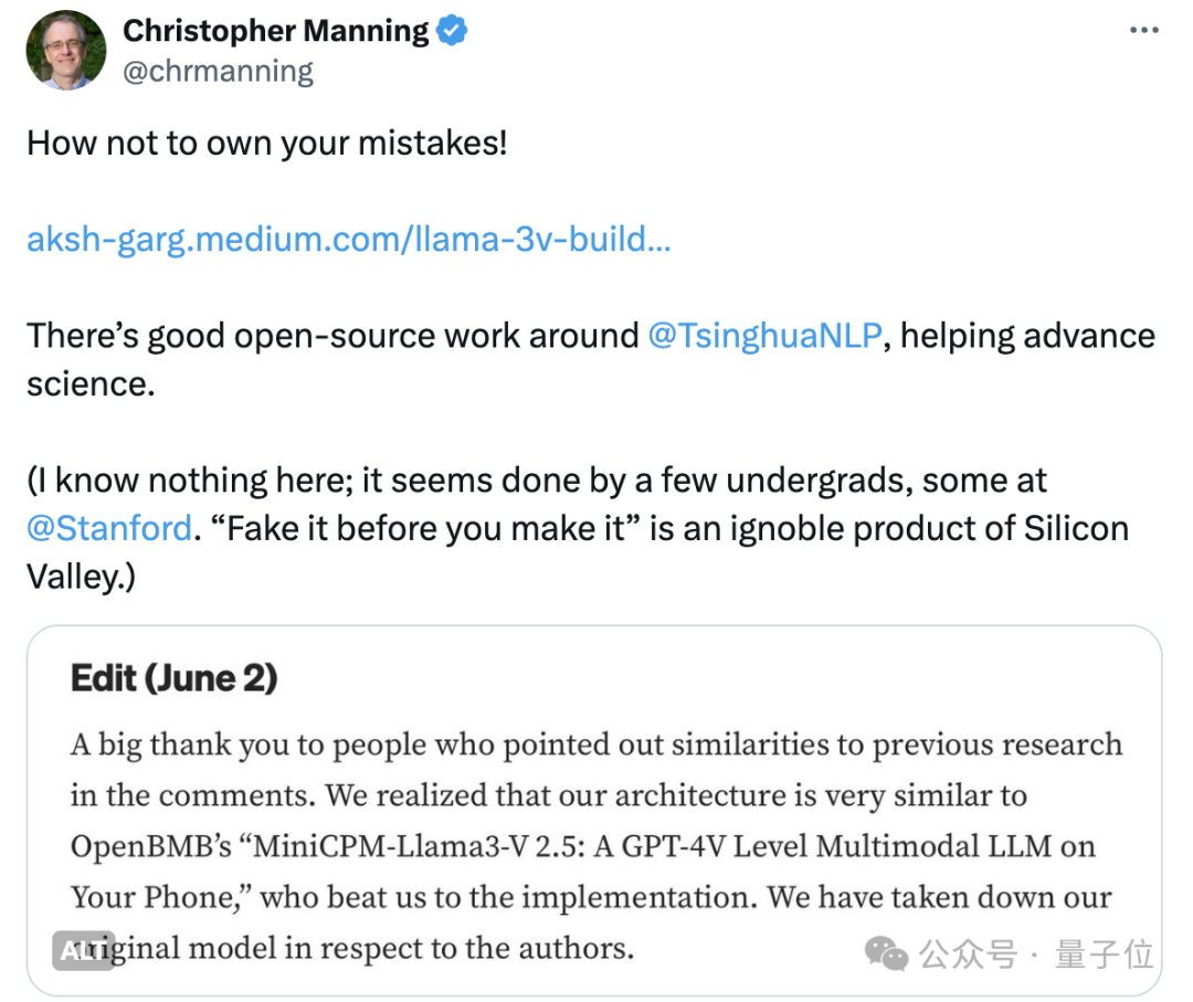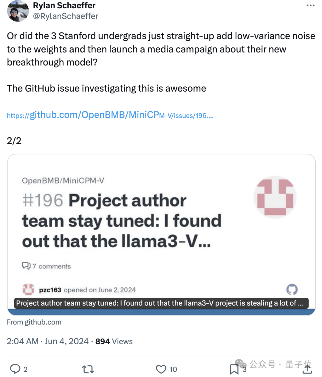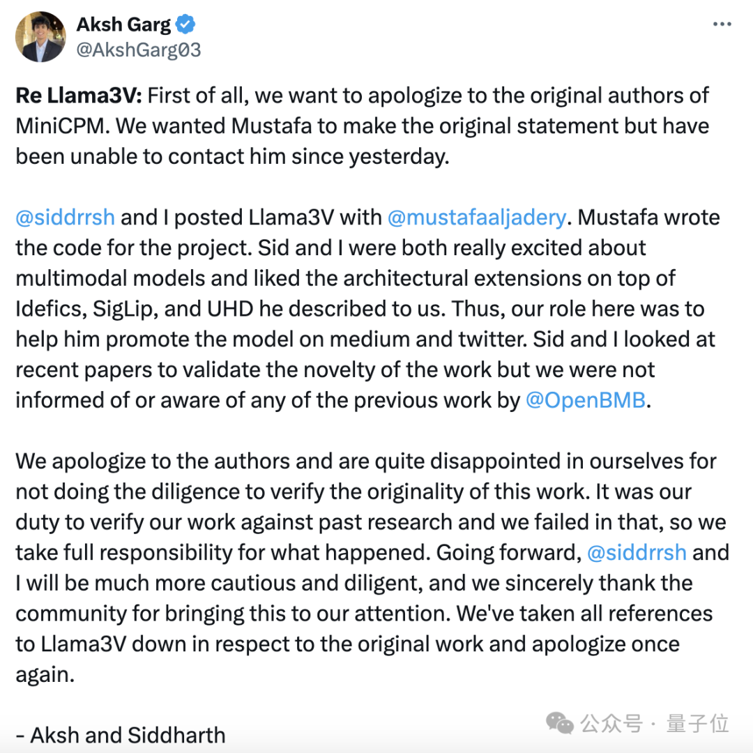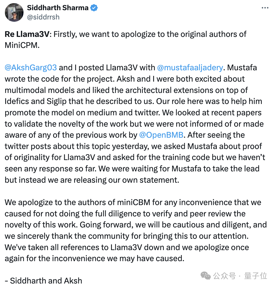 Llama3-V团队承认抄袭,其中两位来自斯坦福的本科生还跟另一位作者切割了。