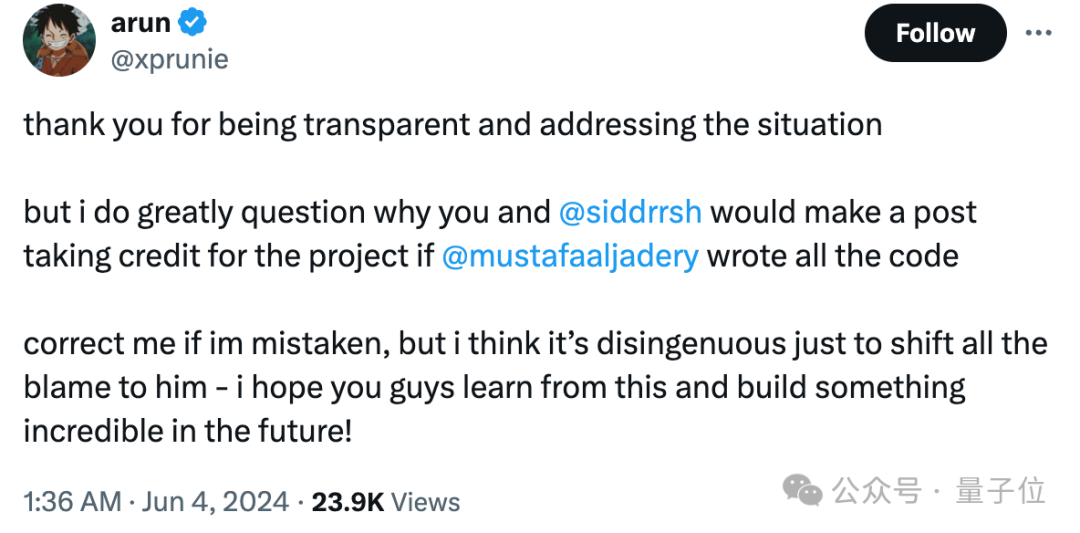 他认为团队在事发后避重就轻,用“架构相似”、“MiniCPM比我们更快实现”的借口推脱,拒不承认是抄袭。