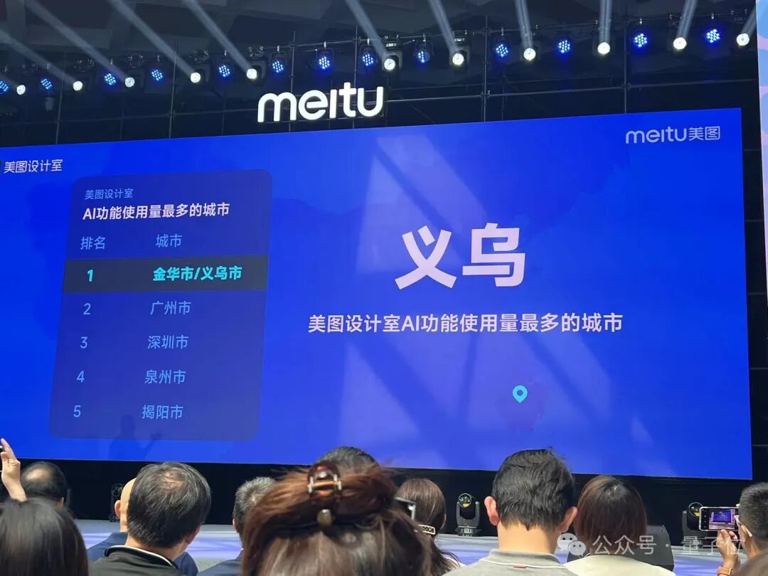 比如在电商领域,让人意想不到的是,美图设计室AI功能使用量最多的城市不是大家所熟知的北上广深杭,而是在义乌。