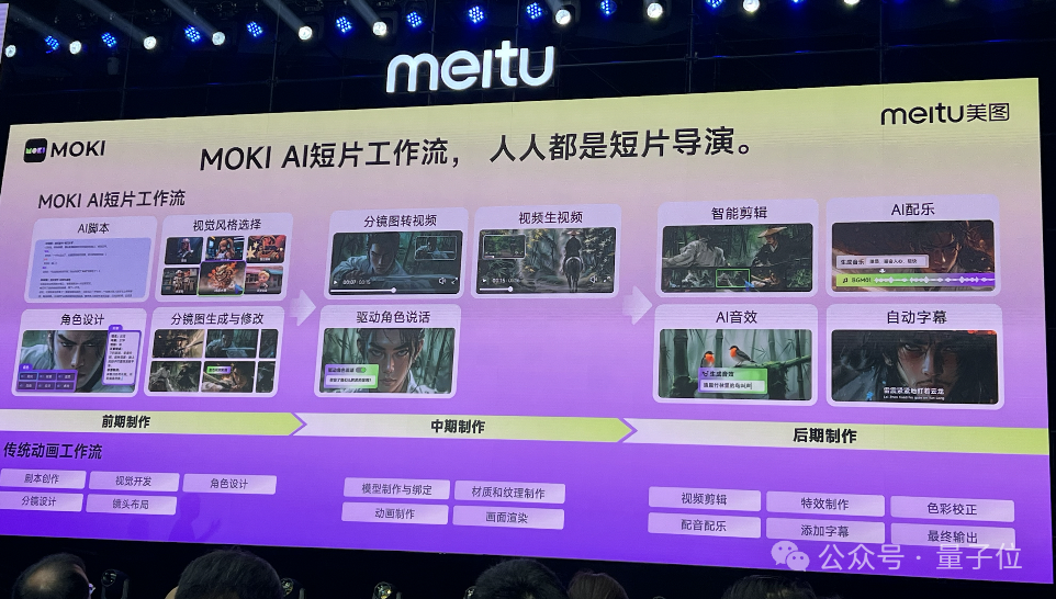 基于此,MOKI建立了一个AI短片工作流,覆盖整个创作周期,实现高度可控。
