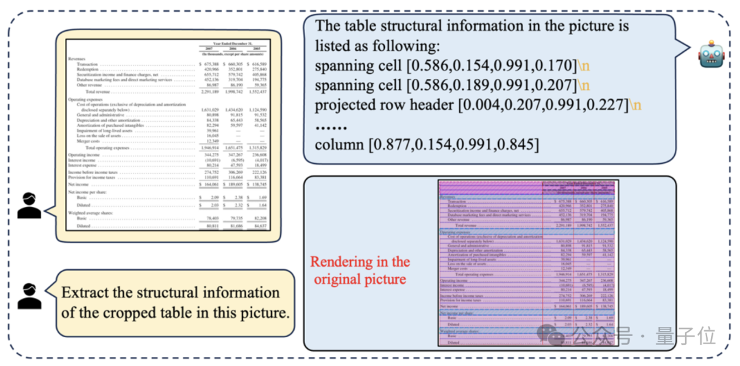 而且不再需要将表格从图片中手动裁剪,研究者们借助大模型的理解能力,让模型可以直接在原始文档图像中实现多表格实例的表格结构识别。