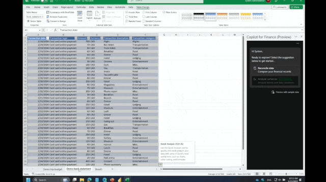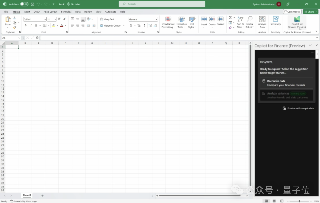 别着急,打开具有Copilot for Finance的Excel账号,就会发现在菜单栏右侧多出了一个Copilot for Finance的图标: