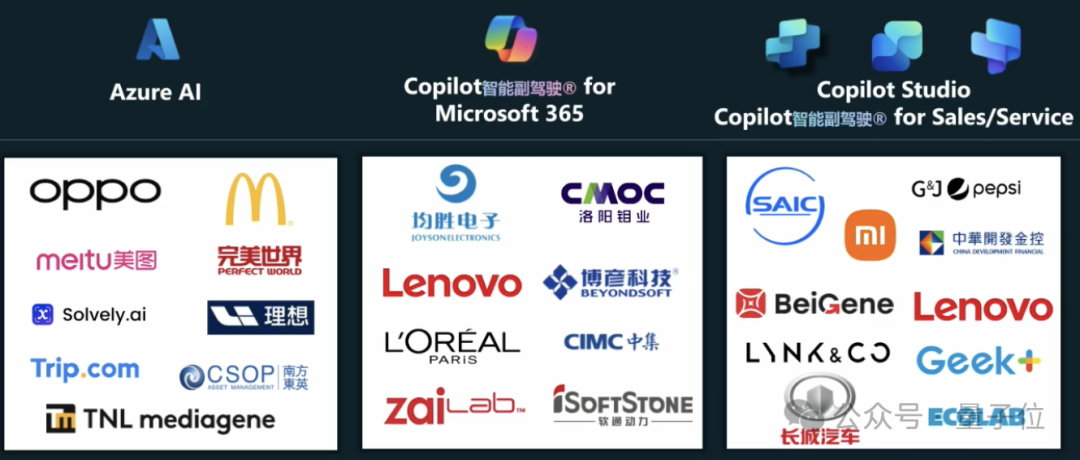 在众多服务基础之上,微软也透露了目前与企业的合作情况。
