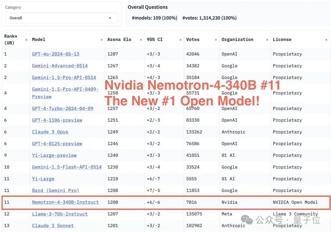排名超过Llama-3-70B,英伟达Nemotron-4 340B问鼎竞技场最强开源模型!
