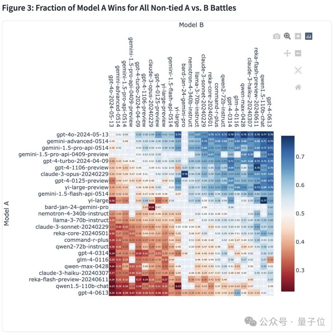 胜率热图显示,Nemotron-4 340B对阵Llama-3-70B的胜率为53%。