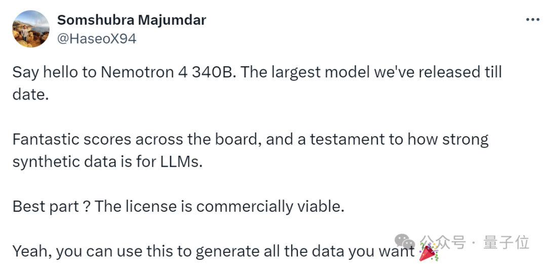 简单回顾一下,英伟达上周五突然宣布开源Nemotron-4 340B,该系列包括基础模型、指令模型和奖励模型,用于生成训练和改进LLM的合成数据。