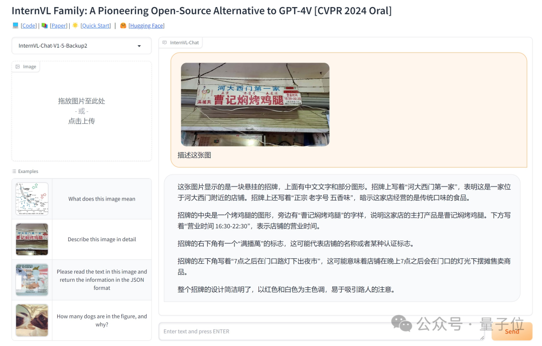 InternVL 1.5支持动态高分辨率,能够准确识别和理解图像中的各种细节以及文字信息。