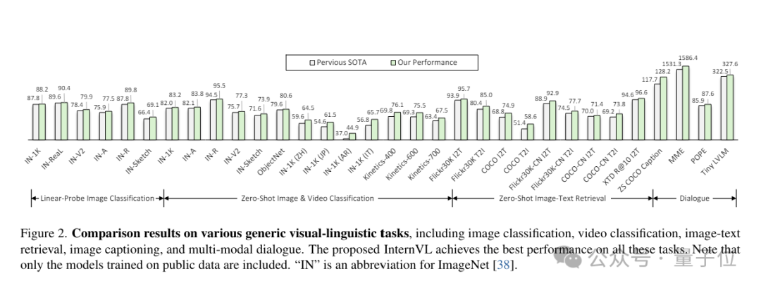 通过验证,相较于当前最先进的视觉基础模型和多模态大语言模型,InternVL在广泛的通用视觉语言任务上能够取得更领先的结果。