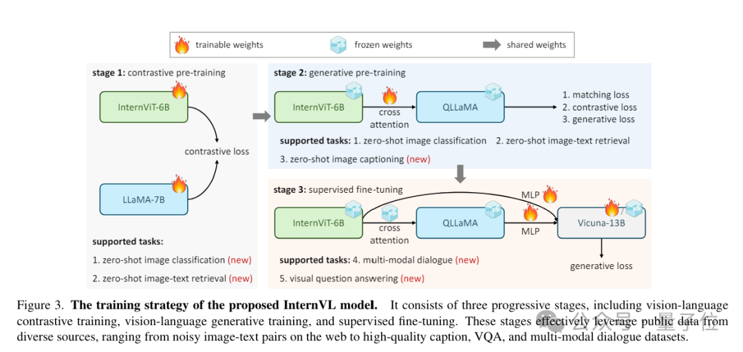 为了有效训练大规模视觉语言基础模型,InternVL还引入了一种渐进式图像-文本对齐策略。
