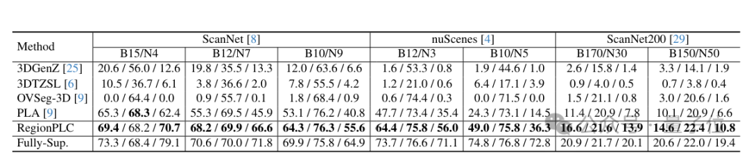 通过大量实验证明,RegionPLC在ScanNet、ScanNet200和nuScenes数据集上的性能优于现有的3D开放世界场景理解方法,并在具有挑战性的长尾或无注释场景中表现非常出色。