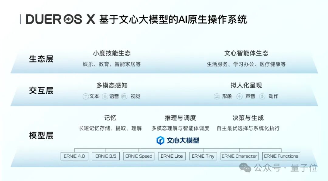 在模型层,DuerOS X全面接入文心大模型作为技术底座,在知识增强、复杂语义理解、个性化长短记忆等方面,都有更强大的表现。