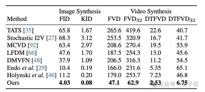 作者从定量和定性两方面评估生成视频的质量,结果显示该方法明显优于基准:
