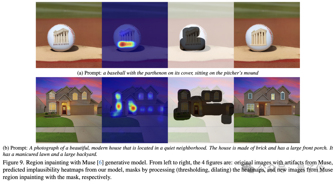 使用预测的失真热力图生成掩码区域,在该区域内对Muse生成图像进行局部修补,减少了生成图像的失真问题: