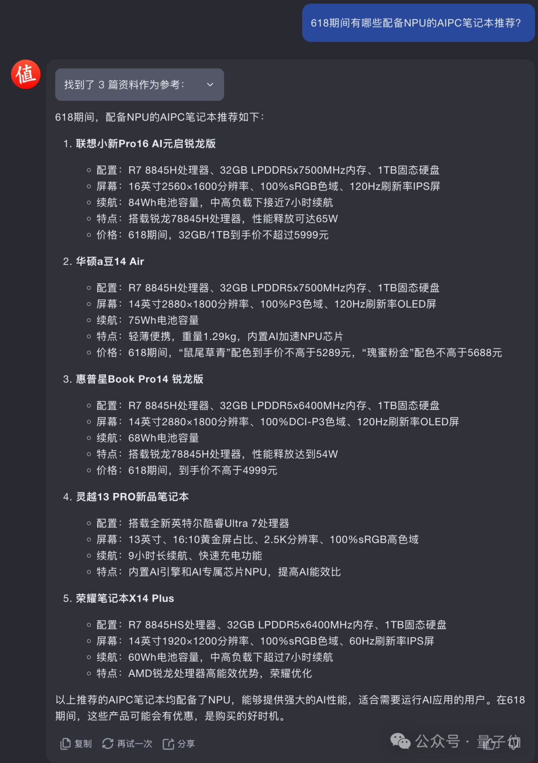 顺着AI给的参考链接点进去就能发现,部分产品型号和配置信息与通用AI助手一样是从全网搜来的。