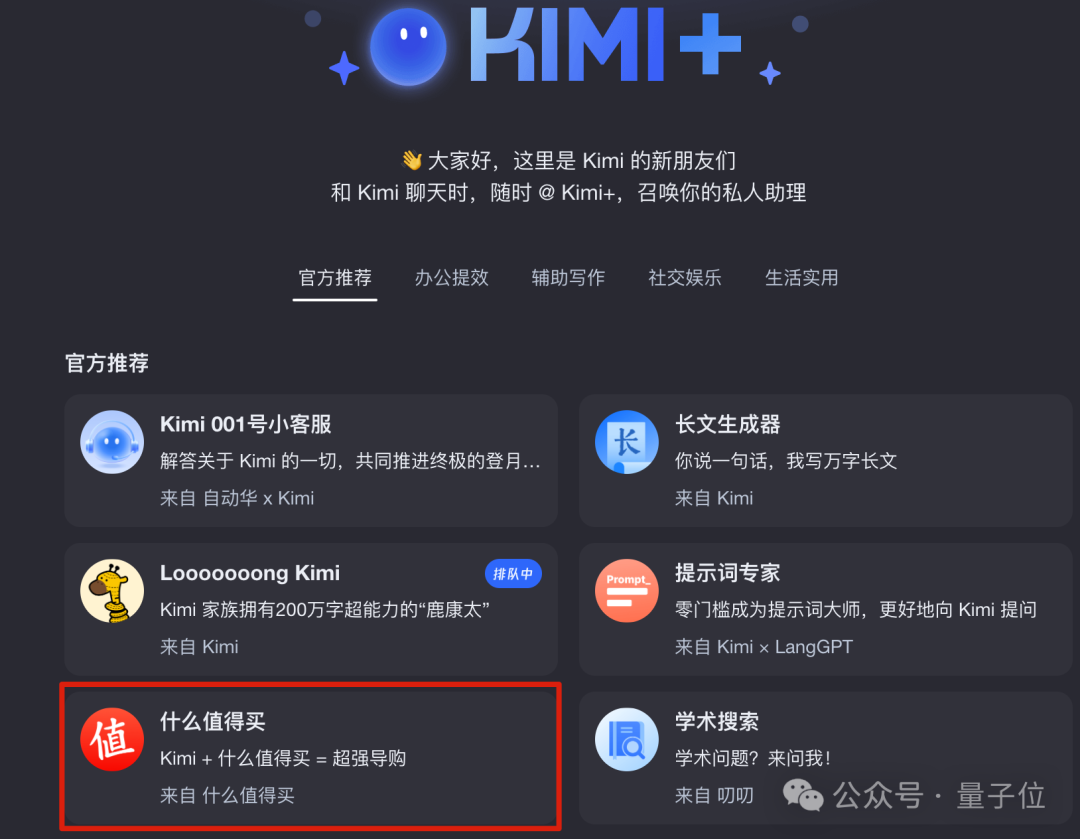 比如这个什么值得买,感觉就很眼熟啊,Kimi之前发布的第一批智能体Kimi+中似乎也见过它。