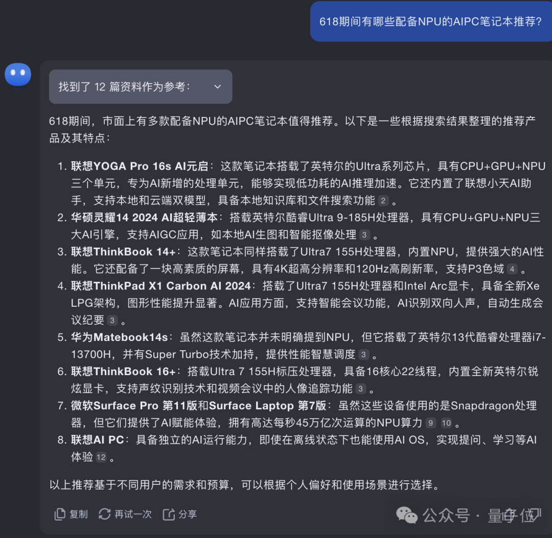 可以看出,Kimi智能助手通过联网搜索也能获取2024年新款型号的知识,不过看起来就像是在把每个产品搜到的信息粘贴过来,各说各的,呈现格式上也有点乱。