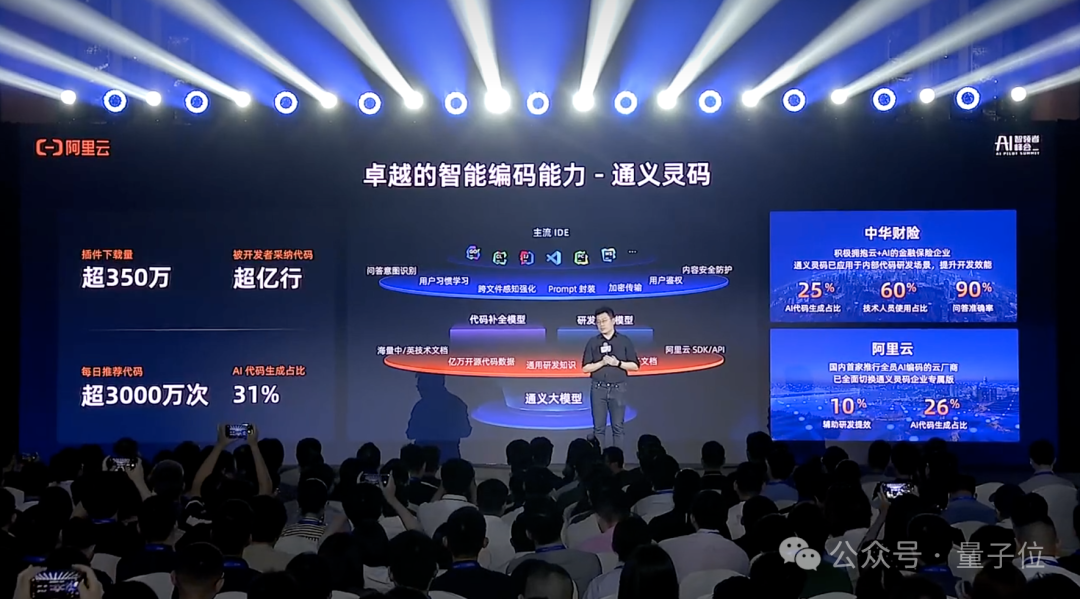 去年11月,阿里云发布了AI编程助手通义灵码。到现在,通义灵码每天辅助开发者生成代码已经超过3000万次。在阿里云内部,AI代码生成占比达到26%,超过了此前预计的20%的目标。