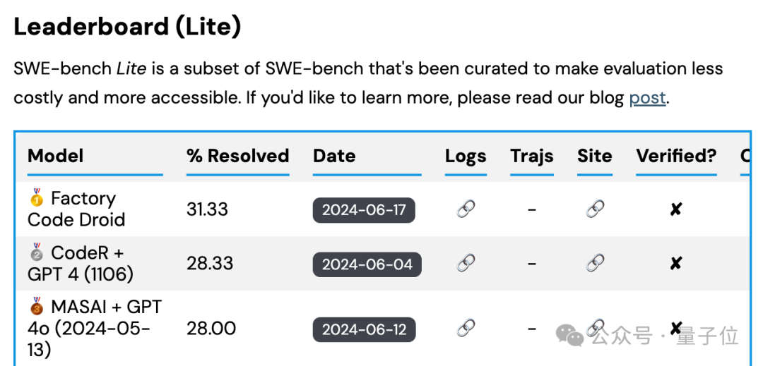 在SWE-bench Lite榜单上,SOTA模型已经实现超过30%的问题解决率,相比年初10+%甚至不到10%的成绩进展明显。