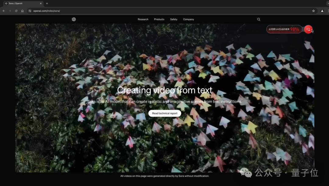 比如一进入Sora的宣传页面,系统就会针对网页里的Demo视频做出提示标注,提醒浏览者该视频“AI含量”极高。