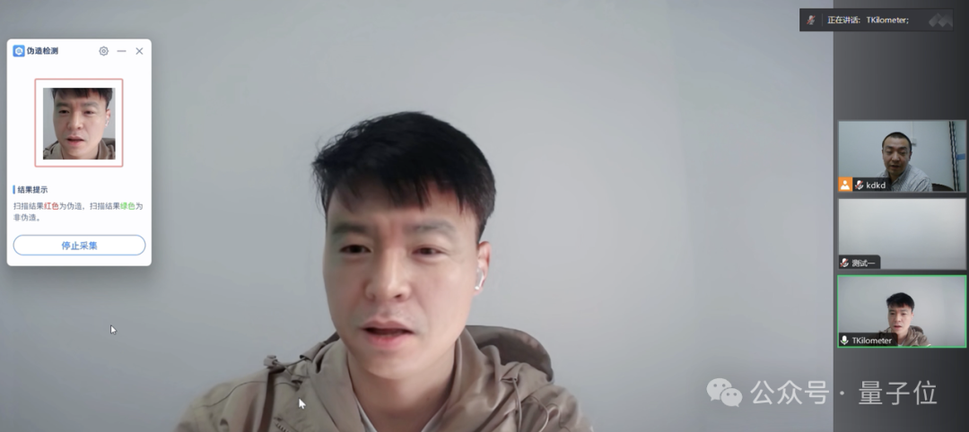 而且无需上传素材,在网页和视频会议中就能主动探测内容和人脸真伪,并实时给出提示。