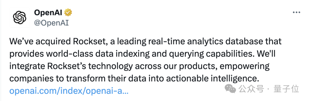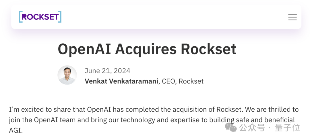 而被收购的Rockset一方,CEO Venkat在通告中直接说,此举将会帮助构建安全有益的AGI。