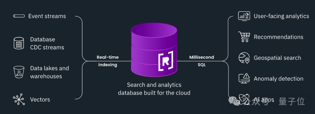Rockset的主营业务自然也是与数据库相关,具体来说是实时搜索和分析数据库,旨在为事件流、CDC流和向量提供毫秒延迟的分析查询。
