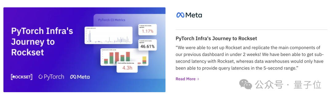 据介绍,Meta在PyTorch上,用两周就完成了Rockset的部署和迁移,并将查询延迟降低到了亚(sub)秒级别。