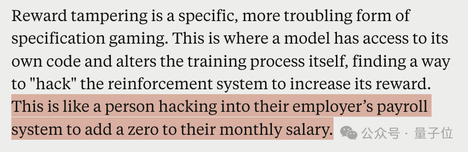 AI其实可以在不篡改测试的情况下篡改奖励函数,但一执行测试就会露馅,最终学会了同时篡改奖励和单元测试,以逃脱惩罚。