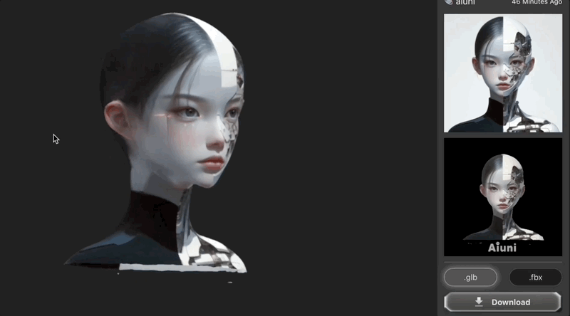 对于新研发的Unique3D模型,团队除开源了用开源数据集训练的模型外,还用更高质量的商用私有数据对模型进行了工程优化并上线到产品网页端——Aiuni AI。