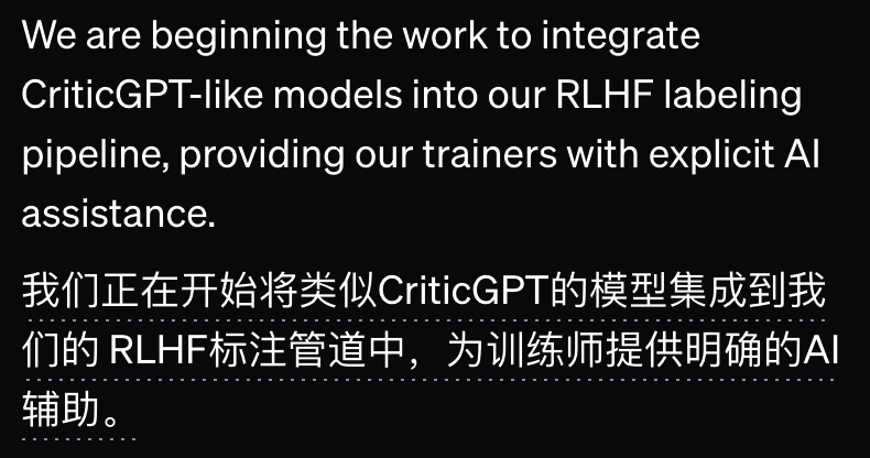 比如在RLHF训练中给AI的输出挑错,而且已经进入OpenAI内部训练流程。