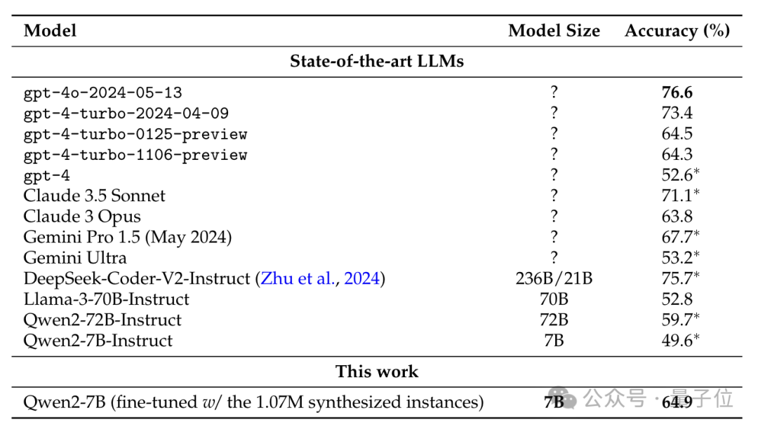 结果模型获得了64.9%的准确率,比原始版本提高了15个百分点,并与1106、0125两个版本的GPT4-Turbo打成了平手。