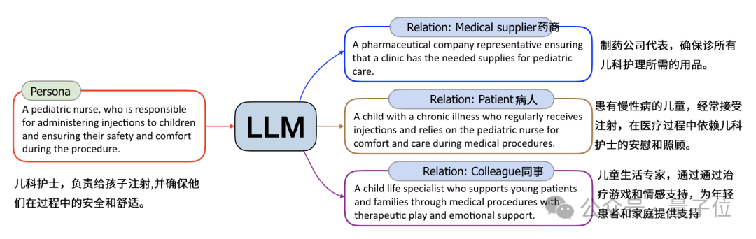 比如前面文生人格环节获得的“儿科护士”人格,就可以衍生出病人、药商、同事等相关联的人格。