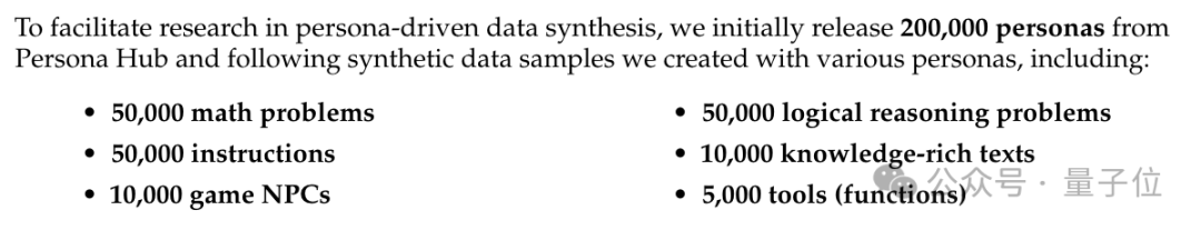 Persona Hub中的这10亿种不同的人格,可以用来生成多种类型的文本信息。