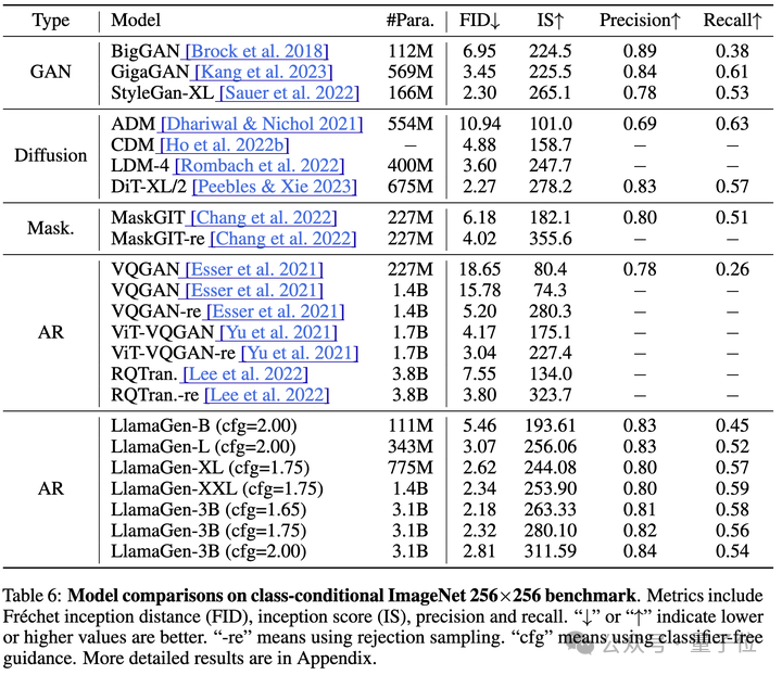 同时,与之前的自回归模型相比,LlamaGen在各个参数量级上均优于以前的模型。