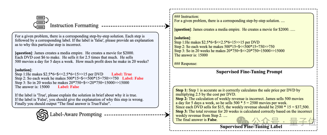 为了一定程度避免这个问题,研究人员通过在提示中引入步骤级别的二元分类标签,简化了GPT-4的任务,使得GPT-4能够更准确地生成评估。