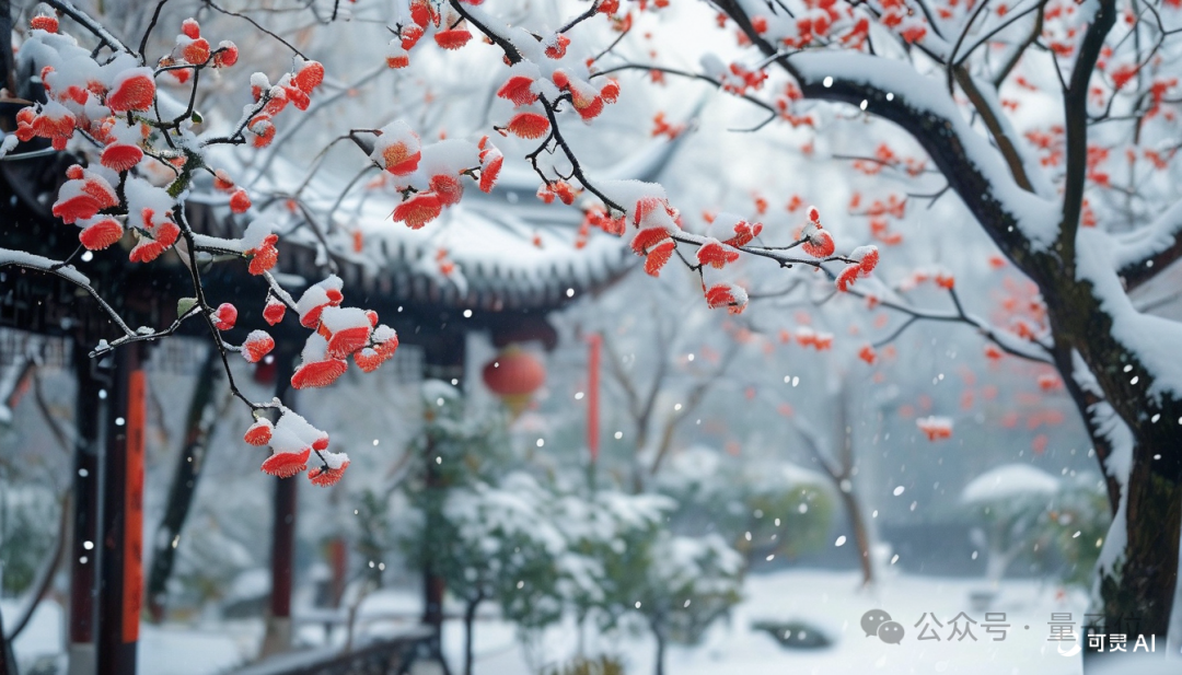而且更懂中文,甚至能理解一些古诗词,比如韩愈的《春雪》中,一句“白雪却嫌春色晚,故穿庭树作飞花”就被可图还原得淋漓尽致。