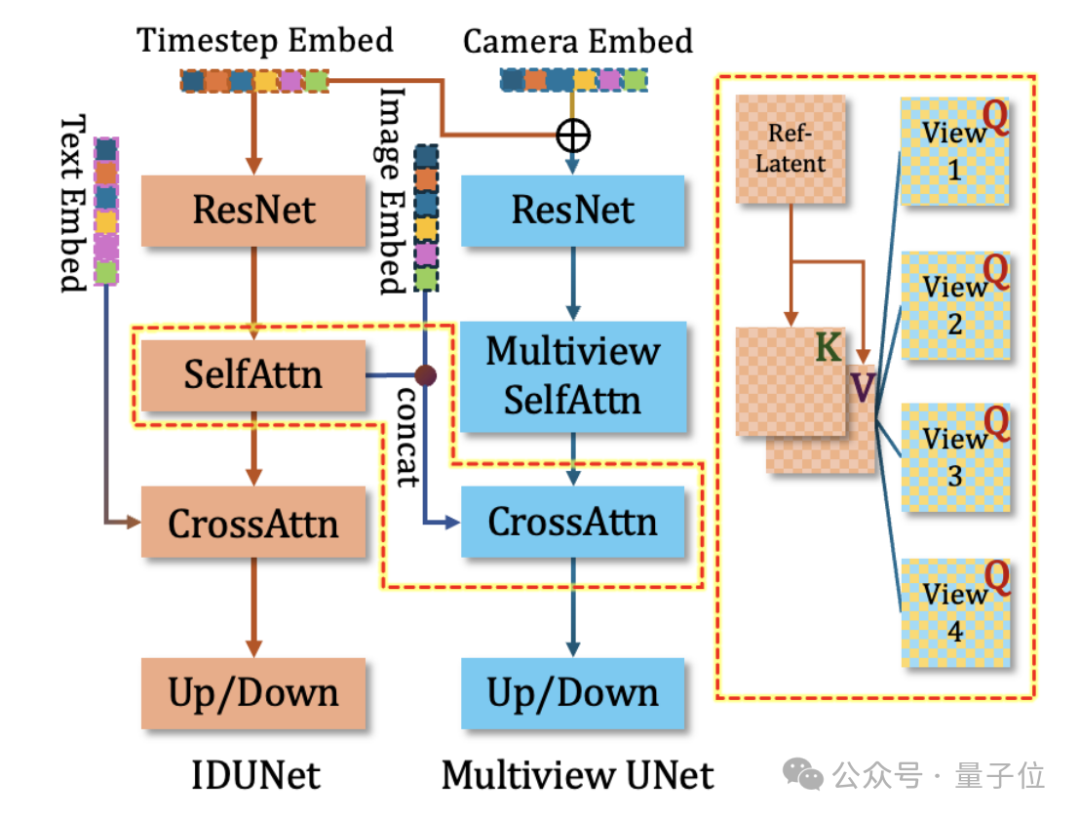 此外,团队在基本的多视角diffusion模型之外,添加了一个同样结构的IDUNet来提取输入人物图片的特征。