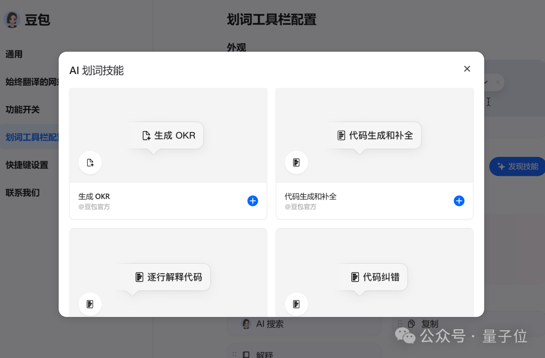 原来豆包插件的AI划词工具栏还允许用户对外观进行个性化定制,“需要哪个放哪个”。