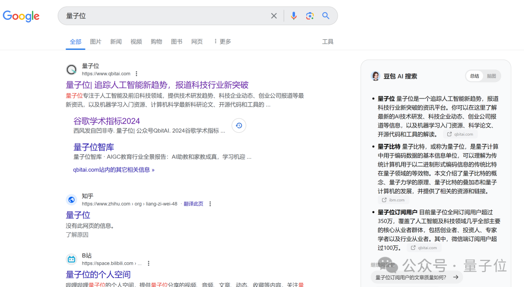 首先是搜索,刚尝试搜了个量子位,没想到豆包插件就化身“田螺姑娘”默默出现了。
